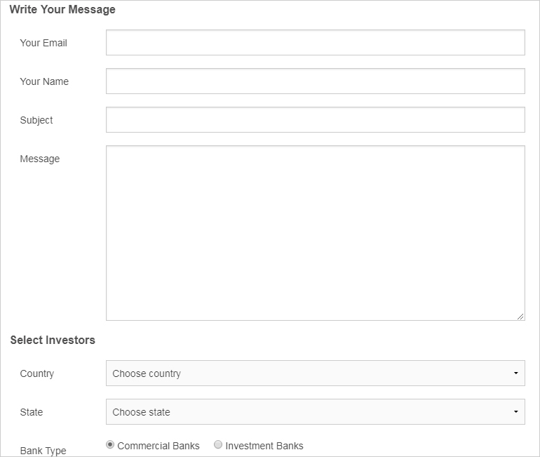 To use Loan Express, simply follow three easy steps: write your message, select locations of banks, and then select types of banks. Within a minute, your message will reach your selected lenders nationwide.